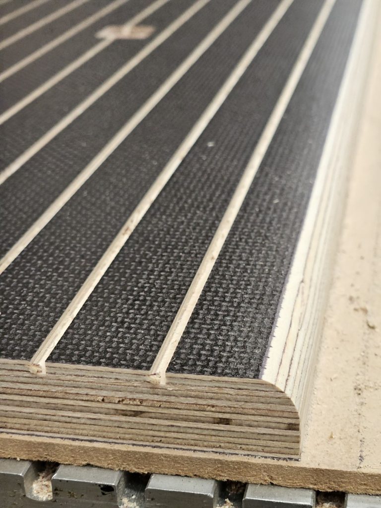 Durable phenolic panels with a mesh-textured surface designed for slip-resistant flooring and high-traffic areas where safety is essential.
